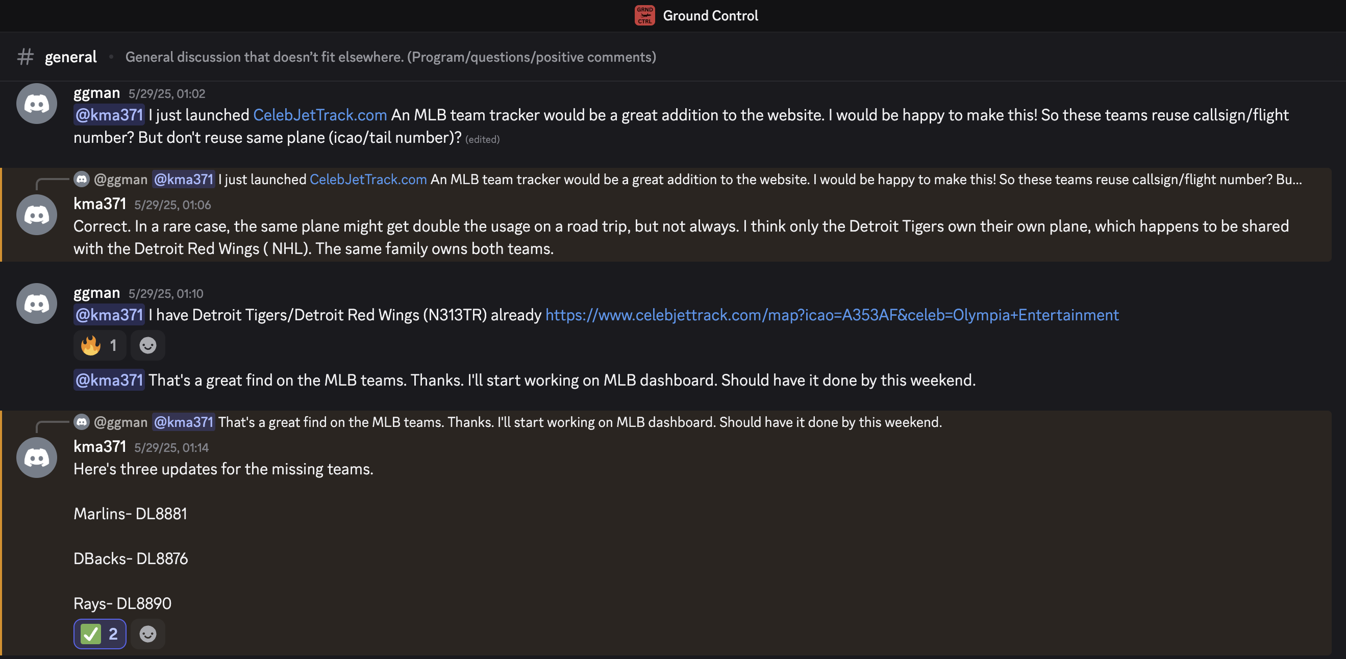 I advertised CelebJetTrack.com in a reply to someone who wanted to track MLB teams. CelebJetTrack.com website: